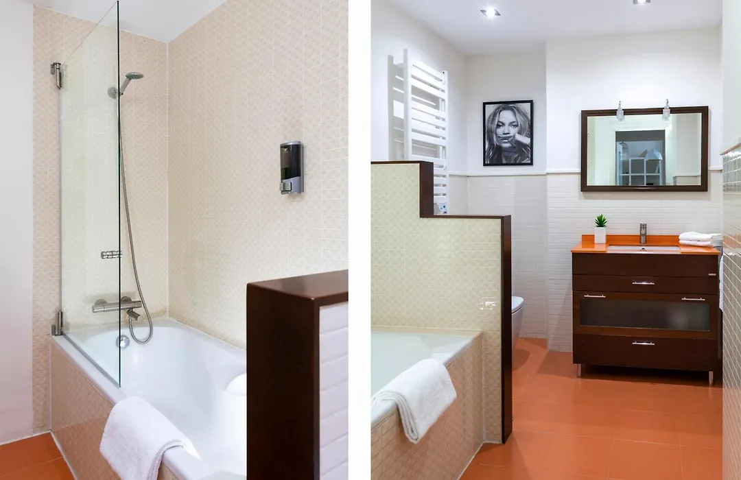 Visitors will enjoy the comfort of a bathroom with hairdryers and towels in this apartment. Moreover, there is a bidet and a separate toilet as well.
